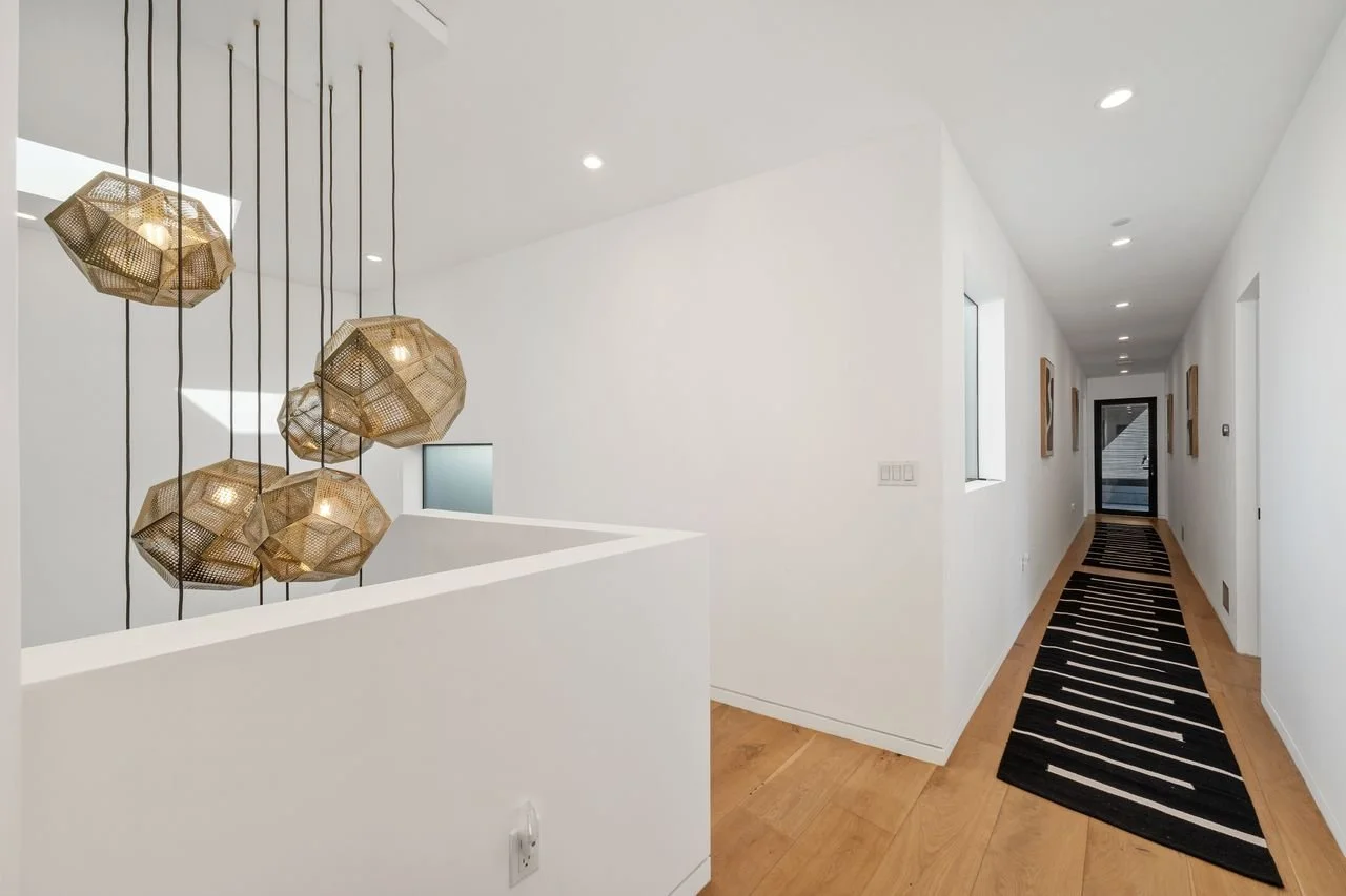 Fully gated and adorned with lush landscaping, the home offers a true sense of privacy both inside and out. Built for entertaining, the home’s large fleetwood sliders connect the main living area to a luxurious saltwater pool, jacuzzi and outdoor dining area. Walk up the outdoor staircase to an enormous 800 sq ft roof terrace, ideal for lounging. Guests can enjoy five spacious king bedrooms, a fully-loaded kitchen, indoor and outdoor dining, multiple workspaces, a garage gym and more.